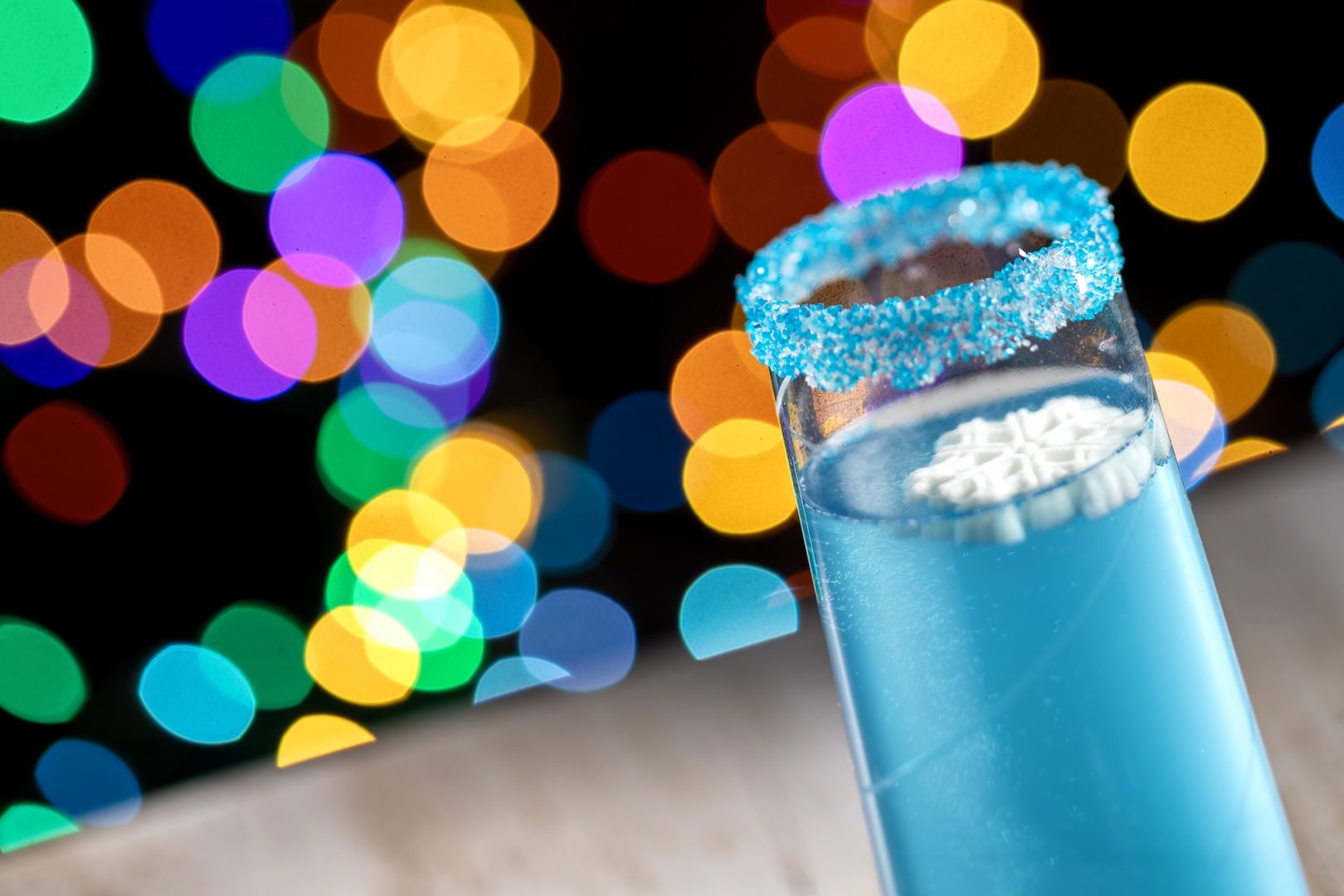 - Sparkling Snowflake Mimosa: White cranberry juice, guava syrup, blue curaçao syrup, lime juice, and champagne with a blue sugar rim and sugar snowflake (New)